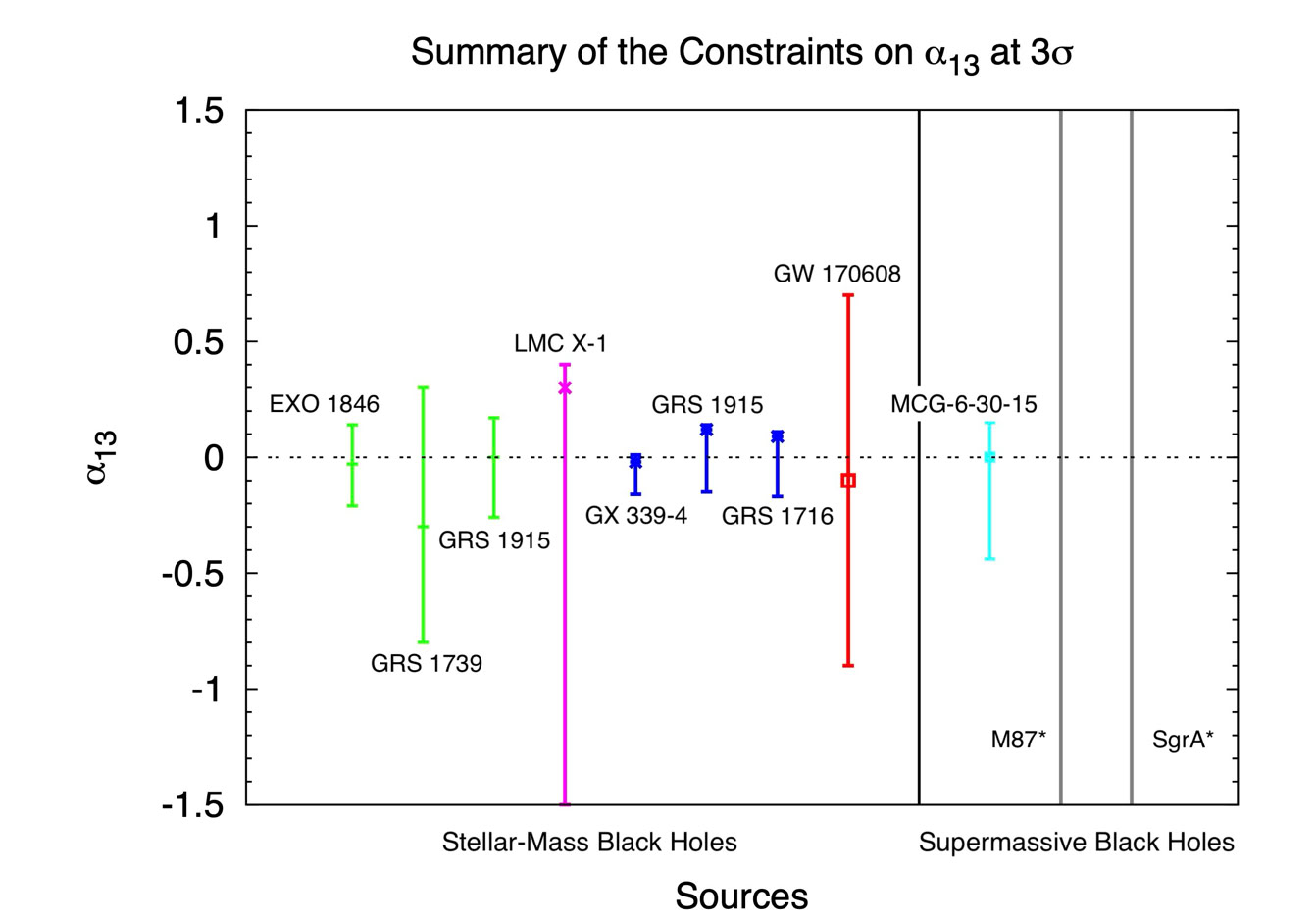 With our models relxill_nk and nkbb, we have tested the nature of astrophysical black holes. Our X-ray tests are somewhat more stringent than current gravitational wave tests and significantly more stringent than current tests from black hole imaging (see plot below, where our best constraints are reported in blue and are inferred by combining the analyses with relxill_nk and nkbb)
